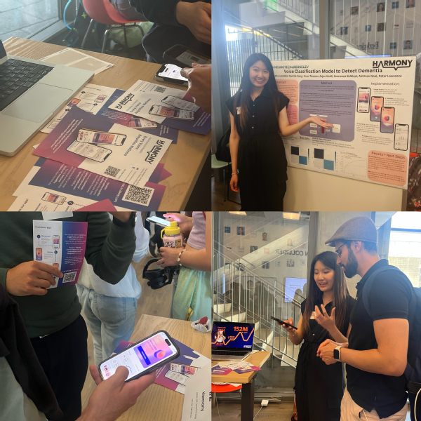 在伯克利交流期间,我还参与了Challenge Lab的创业项目,给予了我新的设计思考。在这个技术犹如奔驰骏马的时代,设计是马鞍和缰绳,帮助人们驾驭并适应技术的前行,让技术真正惠及更多普通人。我与来自波兰、挪威、土耳其、加纳等国家的分子生物学和计算机科学背景的队友合作,参与了痴呆症早筛的AI解决方案设计,致力推动产品商业化。我们与伯克利Neurotech实验室合作并掌握了一种通过声音生物标志预测痴呆症的AI技术。作为团队内唯一设计背景的成员,我尝试从用户体验设计的角度来帮助用户了解和使用新技术。我还积极协调团队合作,从跨学科背景的同伴身上获益良多。最终,该创业项目入围了伯克利The Large Bid,获得教授与专业人士高度认可。如今我们仍在推进这个项目,希望有朝一日能够进行商业落地,真正帮助人们共同应对老龄化挑战。