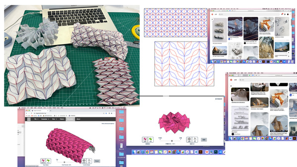 记得在大一下学期的第一节综合设计课程“形态设计”中,我在杨继栋教授的耐心指导和启发下,发掘了以折纸技艺创新灯具形态的思路。我非常享受在动手实践中不断发现和思考的过程,从身边可获取的各种材料上手,设计测试了近十种可拉伸变形的折纸形态。在杨老师的鼓励下我还接触了参数化设计,进一步拓展了更多可能性。令我惊喜和意外的是,这次尝试不仅在课内获得了最高分的认可,还引起了材料公司科思创商业化应用的兴趣与关注,让我获得了极大鼓舞。