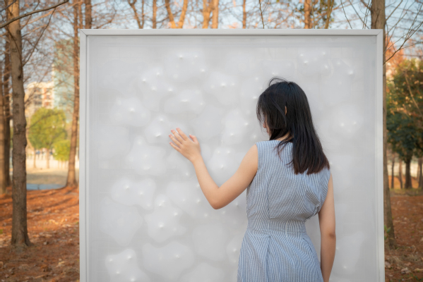在大三上学期的“情感设计”课程中,我与陆沈欢、范润铭同学合作设计了交互装置《Breathings风》,在廖树林教授和邹悦教授的指导下,该作品入选了2024年米兰设计周Isola展。我们意识到,当代城市化使人们越来越远离自然,便尝试风作为气象学符号之外的具体生命内涵,以风为媒介,增强和唤醒人们与自然的连接。在米兰的实地展览中,该装置获得了不少国际参观者和专业人士的关注与认可。在看到人们若有所思的神情、沉浸式互动的惊喜、恍然大悟的会心一笑时,我心想,这或许就是设计者给人们带来的“顿悟时刻”(Aha Moments)吧。
