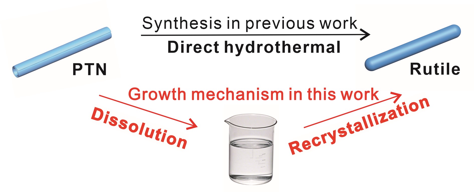 图3.从质子化钛酸纳米管(PTN)合成金红石应经过溶解-再结晶过程