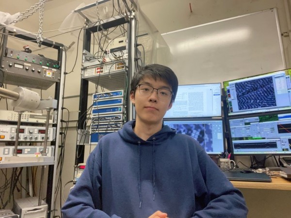 2024年,乔宇堂通过学校的"3+1"国际交流项目赴加州大学伯克利分校交流。在伯克利,他进入了Michael Crommie教授的课题组,开启了一段全新的实验物理探索之旅。乔宇堂在上课同时积极参与科研,逐步掌握了二维材料器件的完整制备流程,并学习维护与使用扫描隧道显微镜。在此期间,乔宇堂参与了研究各种分子的电子结构,通过系统性的实验对石墨烯纳米带和金属有机框架的合成条件进行优化,并利用扫描隧道显微技术对其电子结构进行表征分析。