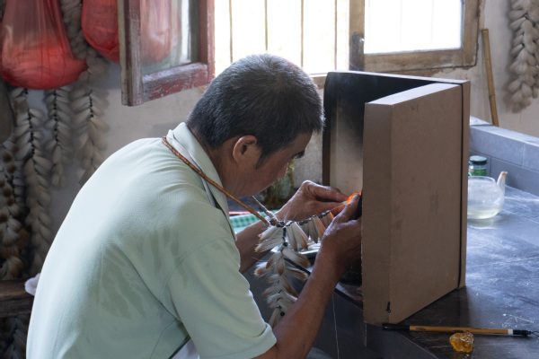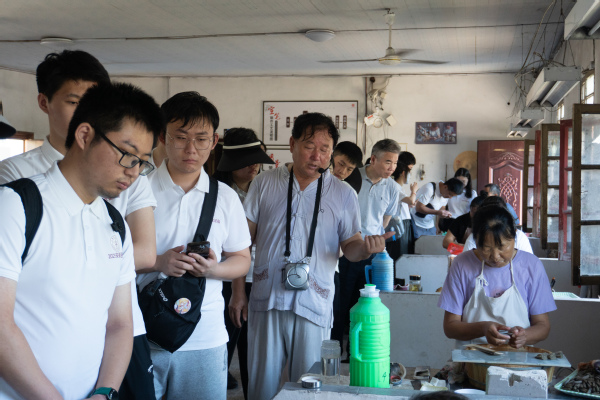 校领导与师生在安徽泾县宣笔厂参观,了解体验宣笔制作工艺。
