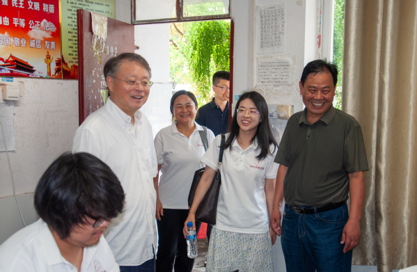 校领导看望支教团队,了解团队的实践内容和生活情况。