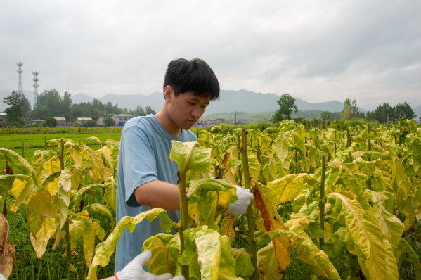 在翠绿的烟叶地,体验摘烟叶