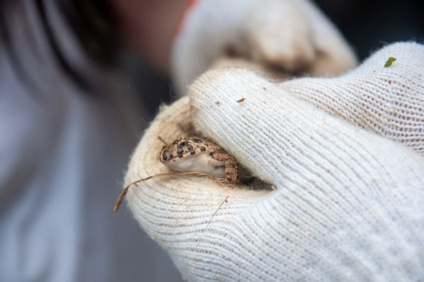 在劳动过程中,意外发现可爱的“小伙伴”。