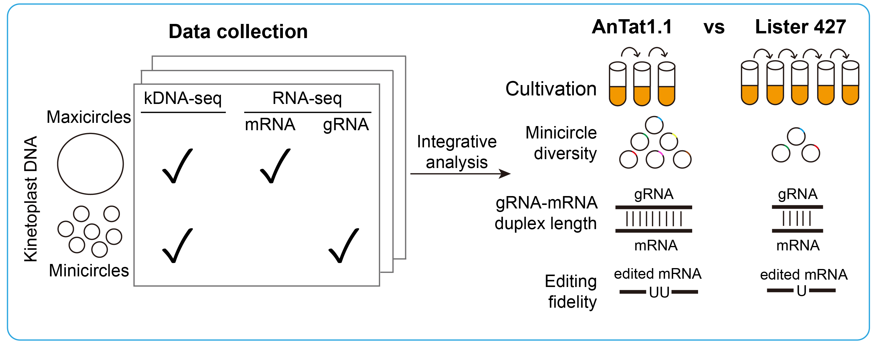 本工作构建了针对锥虫复杂线粒体转录组的计算流程,同时揭示线粒体基因组共进化规律,可能为针对锥虫线粒体小环的药物的耐药机制提供一些新的思路。