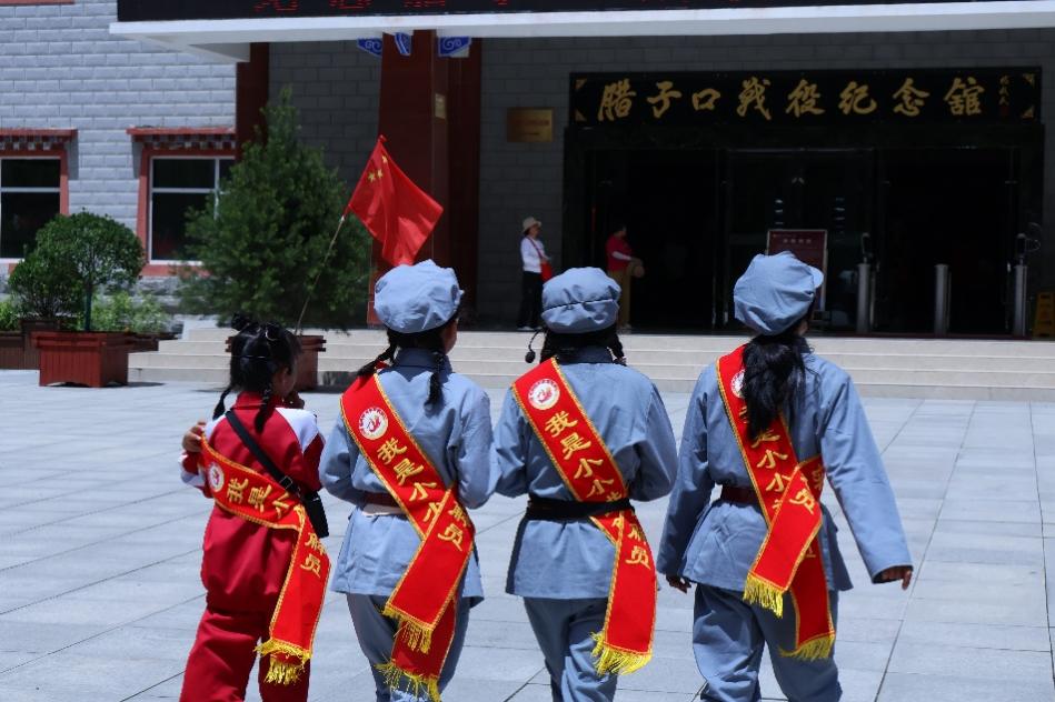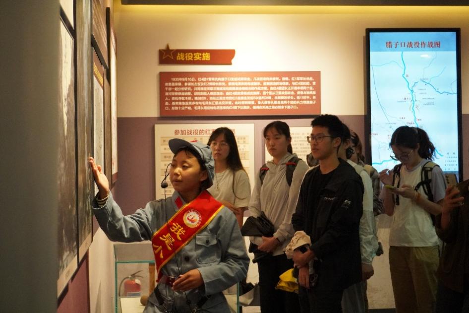 随后,团队前往腊子口战役纪念馆。担任讲解工作的是四位年仅十岁左右的当地藏族小学生,他们身着红军服装,精神饱满地讲述了腊子口战役的激烈战况与英勇事迹。孩子们真挚生动的讲解,特别是提及“先辈们用血肉之躯打开腊子口天险”时,令全体成员深受触动。