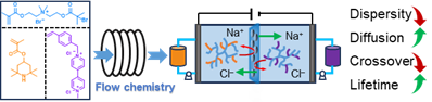 图1:超支化聚合物连续流合成和液流电池应用示意图