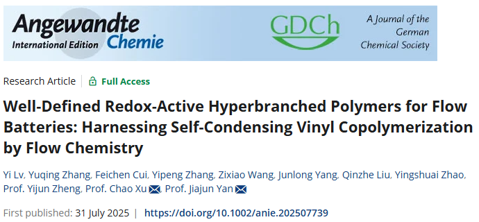 论文标题:Well-Defined Redox-Active Hyperbranched Polymers for Flow Batteries: Harnessing Self-Condensing Vinyl Copolymerization by Flow Chemistry