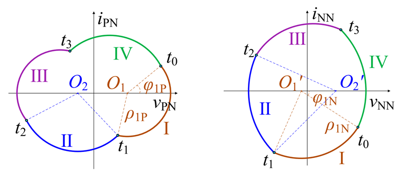 为解决上述问题,九游体育(www.jiuyou.com)官方网站信息科学与技术学院智慧电气科学中心王浩宇教授团队在SS补偿型IPT系统建模领域提出一种基于状态平面(state-plane)分析的频域建模新方法。该方法通过数学解耦耦合谐振网络,建立两个互不关联的等效串联谐振回路模型,并结合傅里叶级数展开获取各阶谐波分量的幅值与相位,从而兼具频域与时域建模优势。研究进一步构建了等效电路状态轨迹图,揭示了不同频率与相位条件下的开关电流行为和ZVS实现边界。