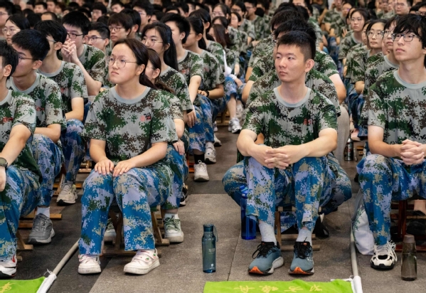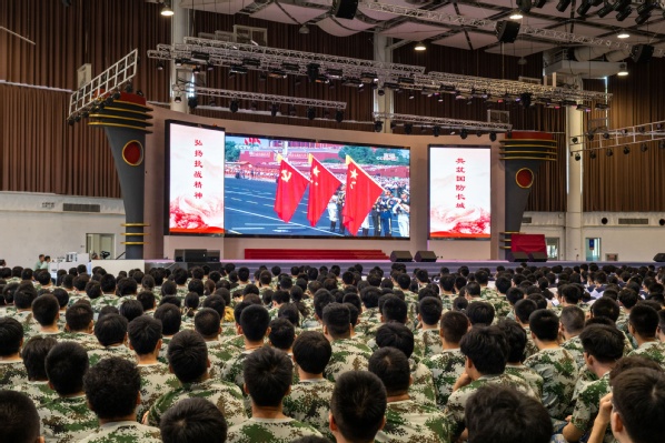 正在参加军训的我校2025级大一新生在东方绿舟军训基地集体观看直播,整齐的方阵中响起阵阵掌声。“屏幕前,身上的军训服与阅兵场上的军装仿佛产生了奇妙的共鸣,汗水浸透的回忆与磅礴展示的国家力量在那一刻交织。抗战精神在今日的彰显,不仅是战场上的英勇,更是每个青年在日常生活中的坚持与奉献。作为祖国的新生代力量,我们必将以更加昂扬的姿态,在新时代的长征路上奋勇前行。” 军训新生陈佳欣说。