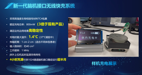 项目核心技术实现了800mW的高功率无线充电能力,在植入式医疗设备领域这是一个里程碑式的飞跃。同时,系统将体内植入设备的最大温升控制在2℃以内,有效避免了植入体过热对人体组织造成的潜在损伤。该系统还全面满足了严苛的生物相容性、电磁兼容性等植入体安全核心指标。目前,该技术的医疗器械原型已顺利通过相关送检,并正式进入猴脑实验阶段,标志着其向实际临床应用迈出了坚实一步。