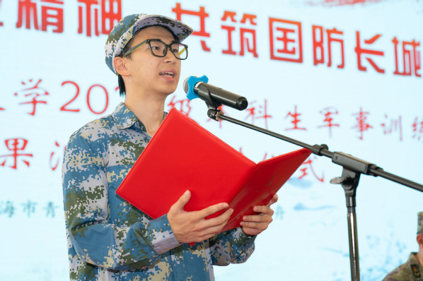 军训学生代表孙泽豪在发言中表示:“军训的影响已深入脑海。未来,我们将以同样的坚韧精神攻克难题,以同样的纪律约束自我,以同样的团结协作迎接未来人生的挑战。”