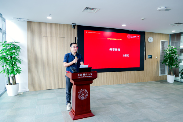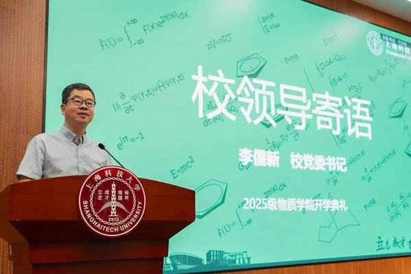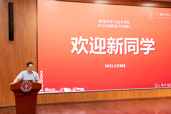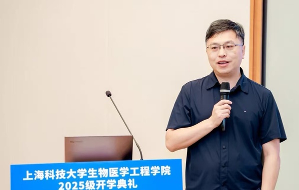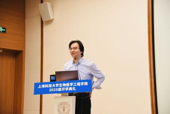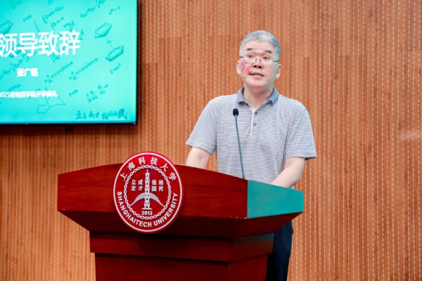 封东来校长肯定了学院近年来在交叉学科建设与人才培养方面取得的成果,并对新生提出了殷切的希望。他鼓励同学们主动摆脱应试思维的束缚,在上科大这片创新创业的沃土上勇敢追寻真正的兴趣与热爱。他希望同学们培养“干细胞”特质——保持高度适应性、自我更新能力和多向发展潜力,成为新时代需要的创新型人才。