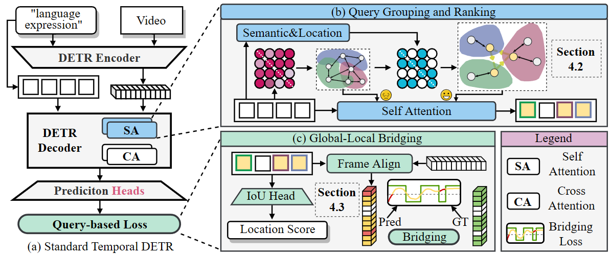 时间句子定位(Temporal Sentence Grounding)是一项关键的视频理解任务,现有方法多基于检测Transformer(DETR)框架构建。但许多为提升DETR性能而设计的策略在该任务中不仅无效,甚至可能导致性能退化。通过系统性分析,本工作揭示了背后的两个主要原因:一是在语义相似的目标片段之间存在查询冲突;二是单个查询内部难以协调全局语义理解与局部定位需求。基于上述发现,研究团队提出了一个简洁而高效的基线模型——Sim-DETR。实验表明,Sim-DETR在所有评价指标上均达到了最先进性能,不仅解决了时间句子定位中查询间与查询内的冲突问题,也为未来研究提供了一个强大而高效的基线模型。