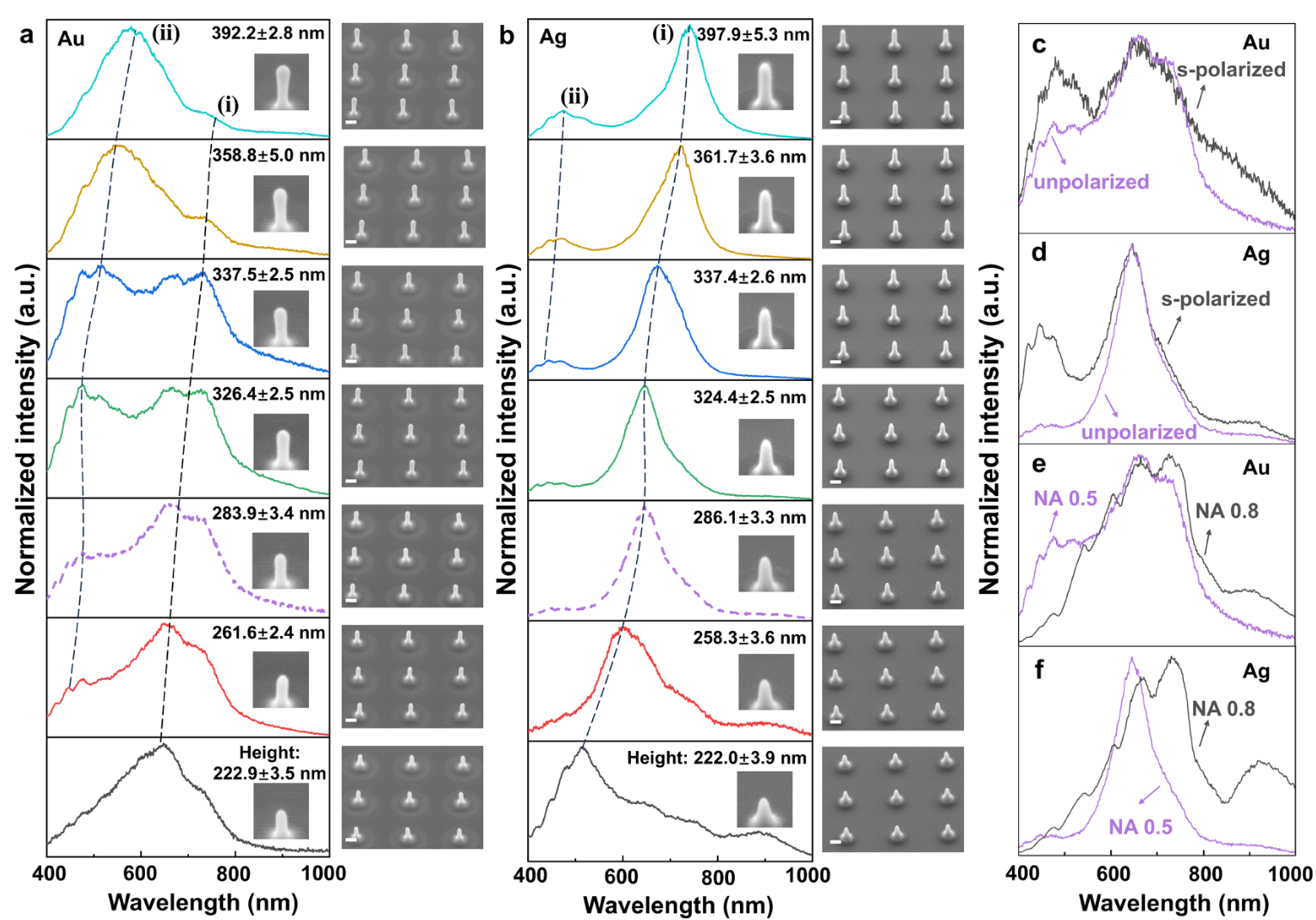 图3:Au和Ag纳米天线对可见光的调控