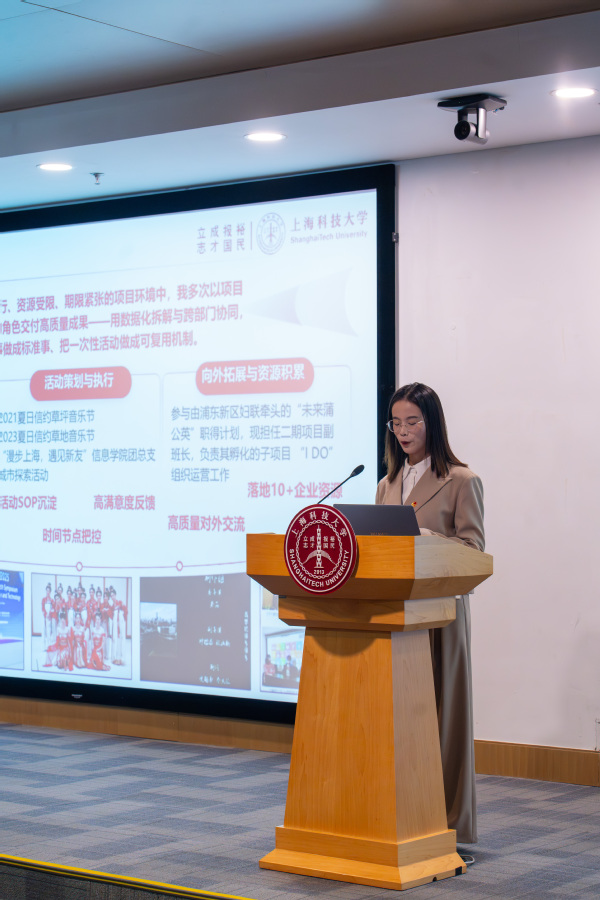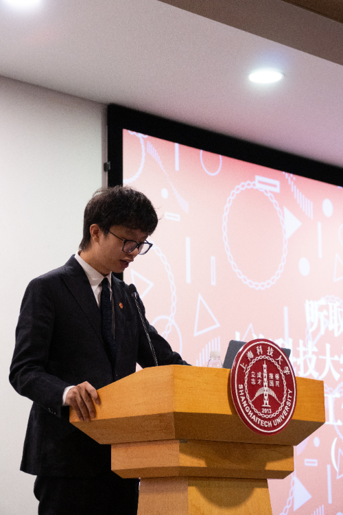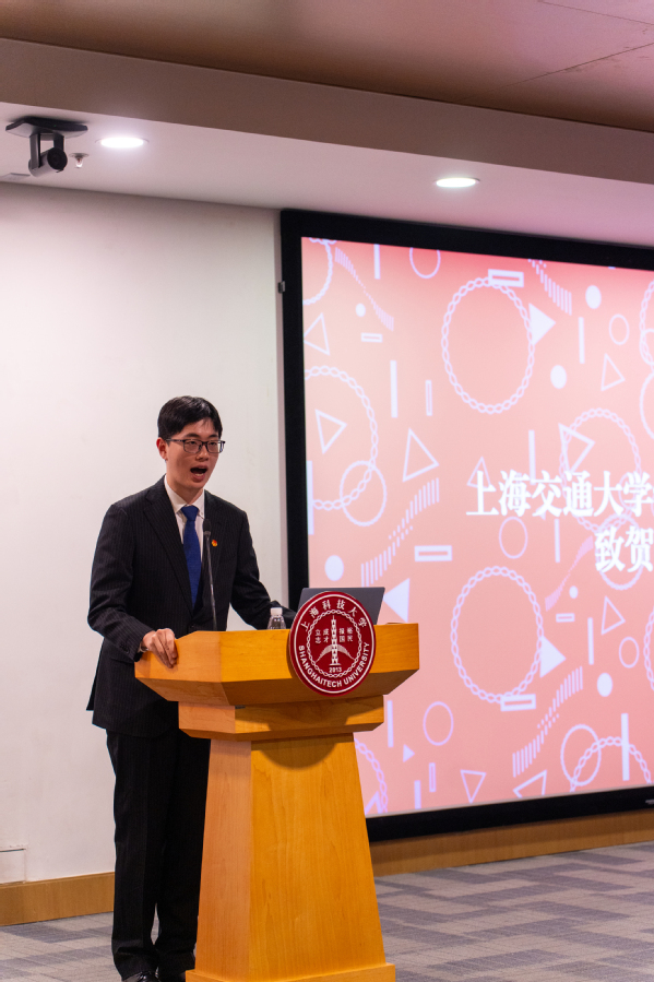 苏钊凝和董又诚分别代表市学联和兄弟高校致辞。他们肯定了上科大学生会在思想引领、学术氛围营造、权益服务和校园文化建设等方面取得的成果,勉励上科大学生会组织与上海市学联及兄弟高校学生会组织携手共进,为青年学子的成长成才贡献力量,为实现中华民族伟大复兴贡献青春力量。