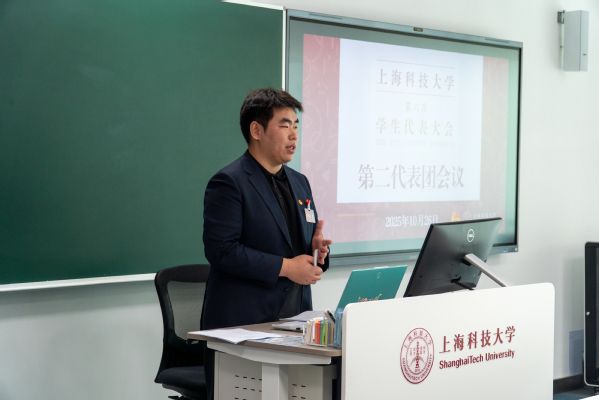 上科大第四届学生常任代表委员会主任、物质科学与技术学院2025级博士生王喆向大会作提案工作报告。大会提案征集内容涉及教育教学、生活服务等各类议题。报告针对提案征集工作的进展情况、代表们所提出的具体问题和建议及相应答复进行了重点介绍。