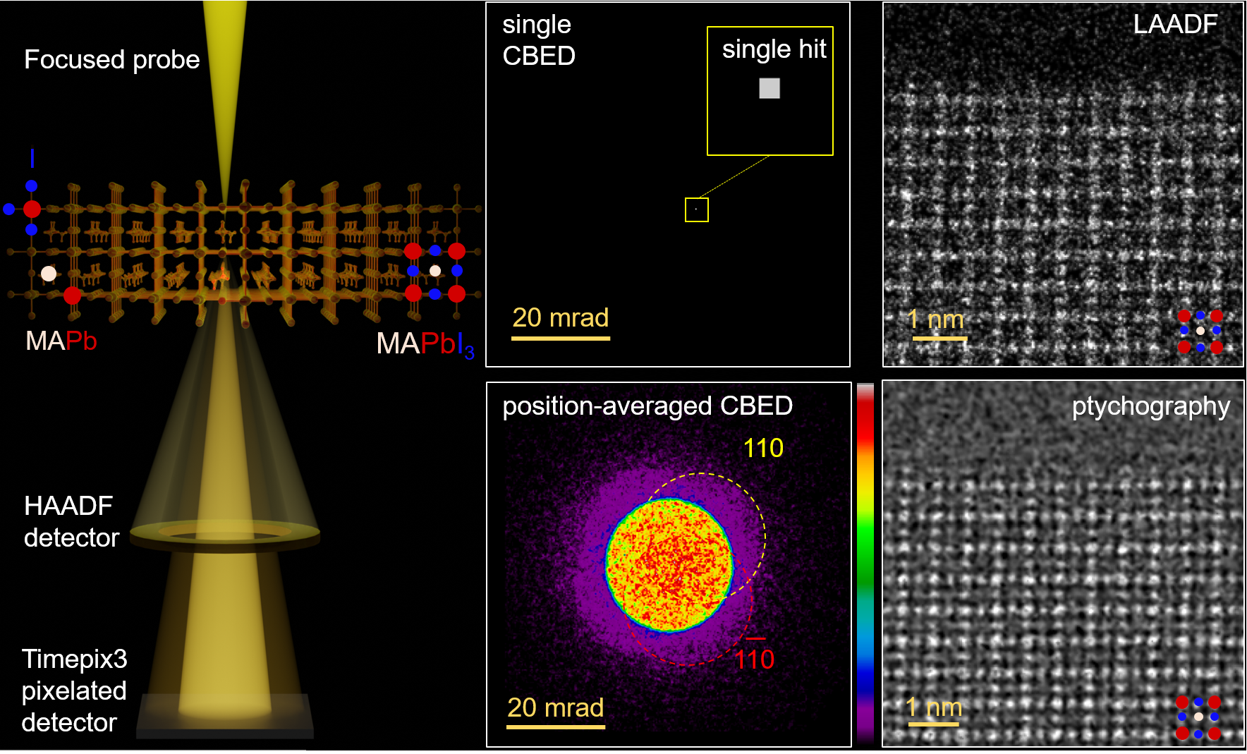 图2:卤化物钙钛矿材料表面边缘的低剂量4D-STEM成像