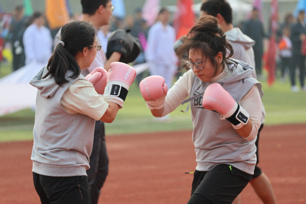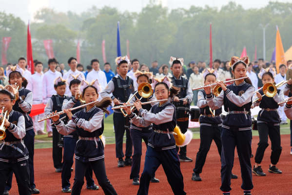 篮球社的活力运球,拳击社的力量展示,跆拳道俱乐部的飒爽英姿,以及附属学校的行进乐团,附属幼儿园的“小哪吒”童趣表演,共同点燃了现场的热情,展现了校园体育文化的丰富多彩。