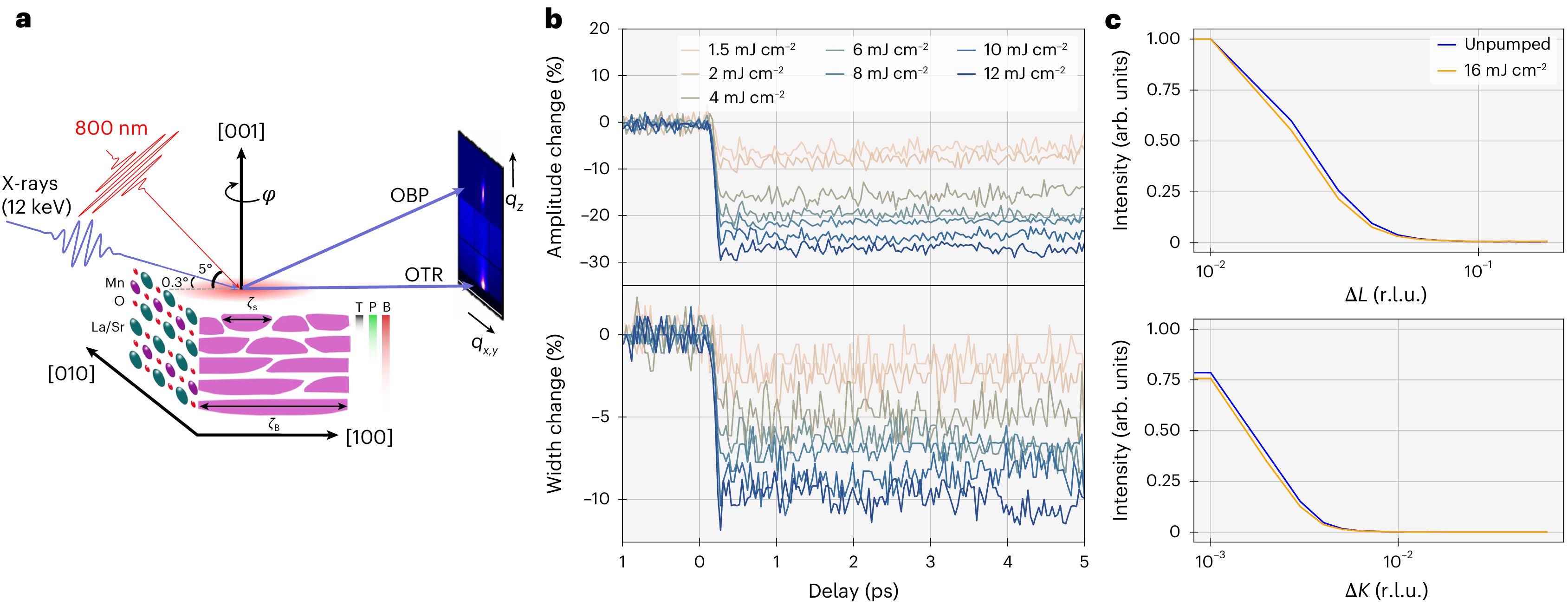 图1: (a) 超快X射线表面与体相探测示意图, (b, c) 光诱导的体相轨道序演化