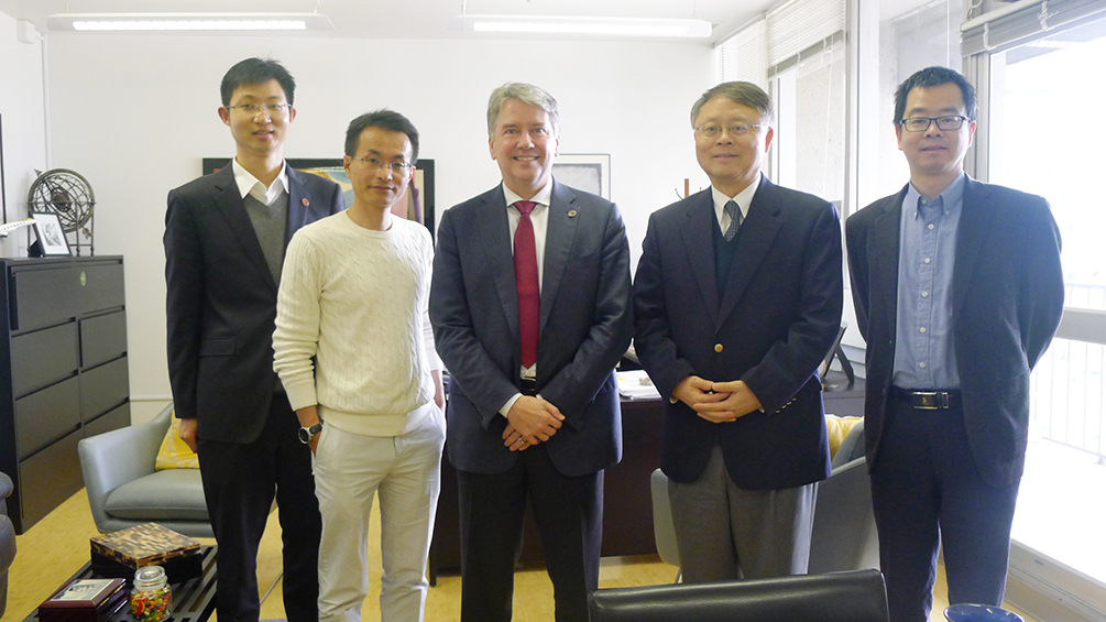 At UC Berkeley, President Jiang met with Associate Provost Tsu-Jae King Liu, Associate Dean of College of Engineering Per Peterson, Dean of College of Chemistry Professor Douglas Clark, ShanghaiTech SPST Founding Dean & UCB Professor Yang Peidong and EE &CS Professor Yu Bing. President Jiang expressed appreciation to the College of Engineering for its support in student exchanges and young faculty training and hoped to expand the BeSTEC program to other schools. Jiang discussed potential programs with the College of Chemistry and talked about mathematical education and research with Professor Yu Bing.