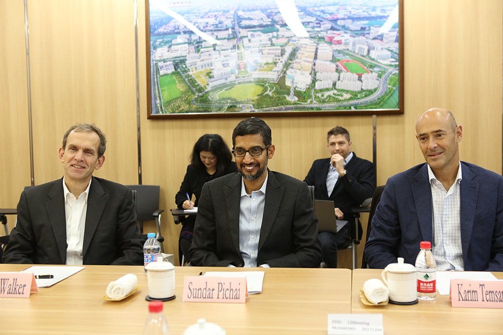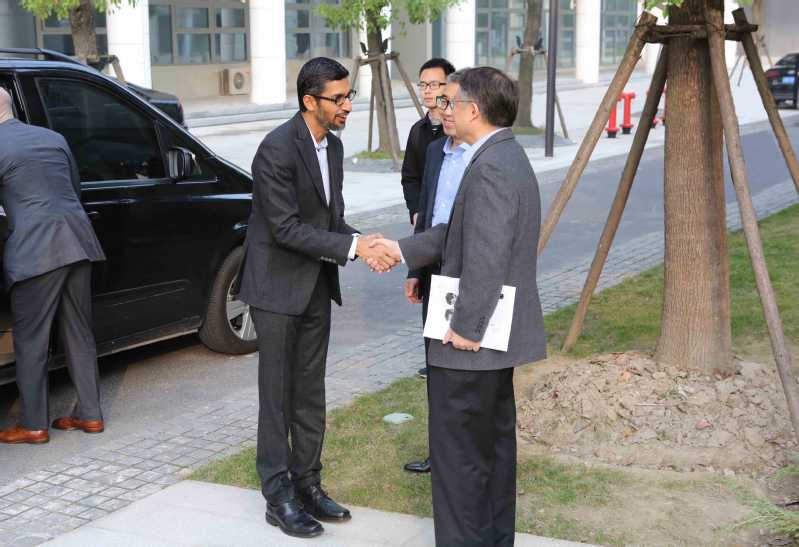 On December 4th, a high-level delegation from Google visited ShanghaiTech, led by CEO Sundar Pichai, and met with President Jiang Mianheng. President Jiang welcomed them expressed his wish to explore new possibilities of cooperation with Google.