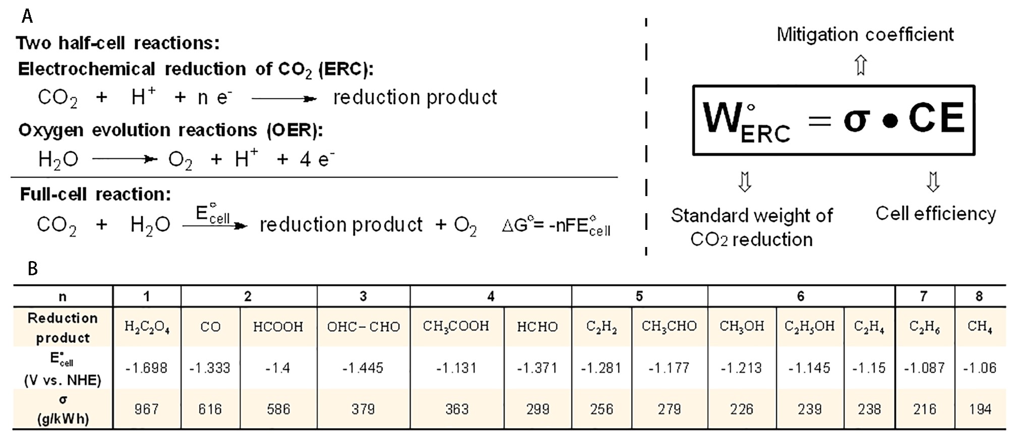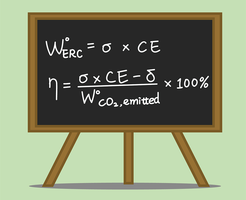 Figure 1 Two simple mass-per-unit-energy equations for quantifying electrochemical CO2 fixation
