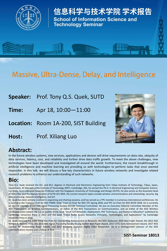 Speaker:Prof. Tony Q.S. Quek, SUTD