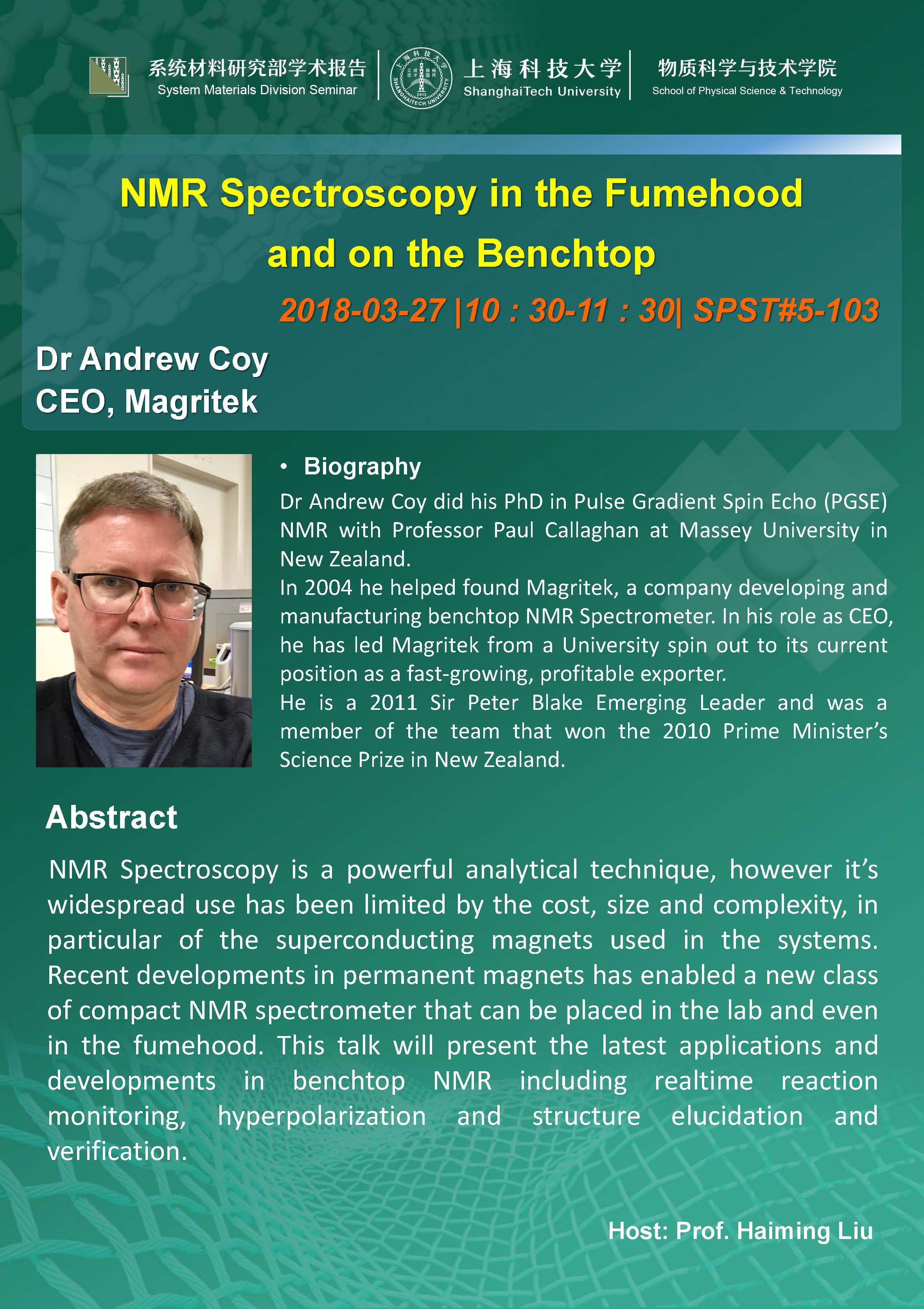 Topic:NMR Spectroscopy in the Fumehood and on the Benchtop