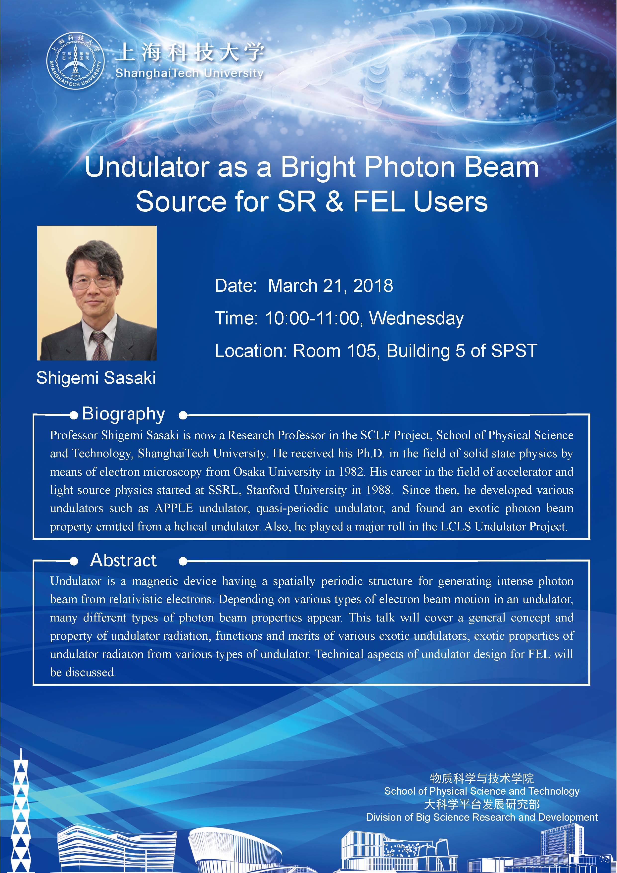 Topic:Undulator as a Bright Photon Beam Source for SR & FEL Users