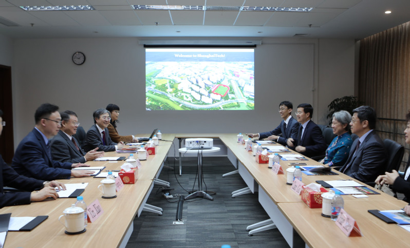 Ms. Ho discussed with ShanghaiTech’s research directions, faculty team and funding mechanisms with President Jiang. She said she was very much impressed by what ShanghaiTech has achieved in the past five years and would be happy to see future cooperation with ShanghaiTech in areas such as tech-transfer.