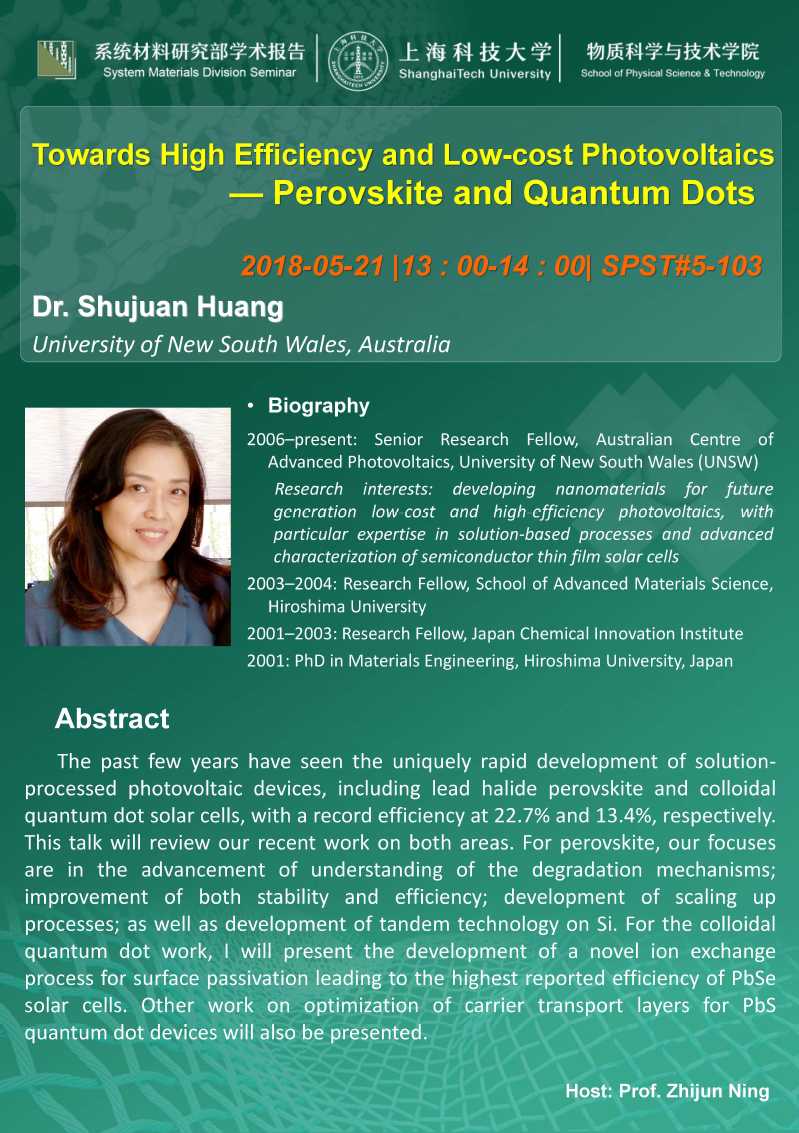 Speaker: Dr. Shujuan Huang