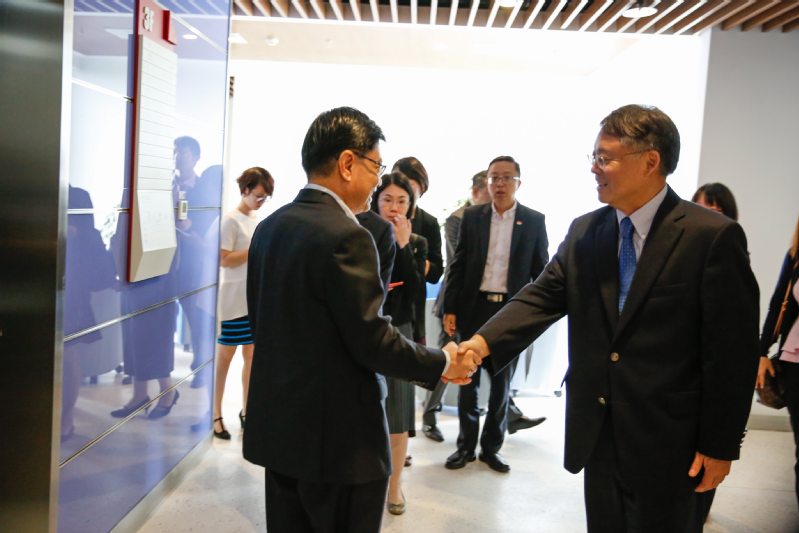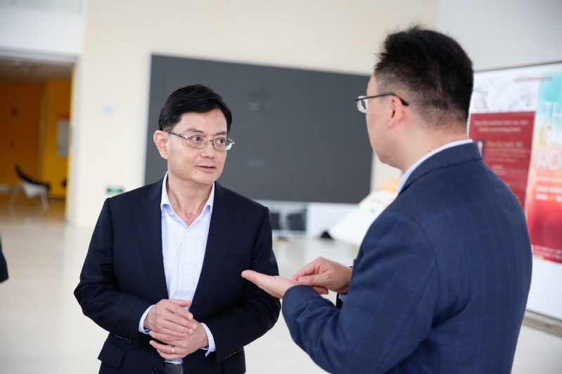 On June 5th 2018, Mr. Heng Swee Keat, Minister of Finance of Singapore, visited ShanghaiTech and met with President Jiang Mianheng. In the meeting, Provost and Vice President Yin Jie presented ShanghaiTech’s new developments. Minister Heng was very interested in the research and educational collaboration between ShanghaiTech and Chinese Academy of Sciences. Meanwhile, President Jiang learned from the Minister about Singapore’s higher education system and said he looks forward to more cooperation with Singaporean universities.
