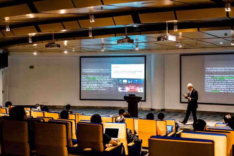 The second day’s program began with a keynote speech addressed by Professor Alberto L. Sangiovanni-Vincent, reviewing a number of exciting fields such as Industry 4.0, energy efficiency, synthetic biology, autonomous aircraft and cars where advances are constantly made towards the mastering of distributed, autonomous systems. The third keynote speech was given by Professor Wayne Luk from Imperial College, also a Fellow of Royal Academy of Engineering. His talk covered recent research on field-programmable technology and machine learning and described how such research can lead to advances in reconfigurable systems that can support improvements in both performance and reliability. Professor Luk demonstrated several of their custom computing examples, including an accelerator for on-board hyperspectral image classification, and a run-time monitoring system. Professor Xu Li Da’s talk outlined the current research of IoT, key enabling technologies, major IoT applications in industries, and identified possible research trends and challenges. Professor Zheng Lirong presented the low power design of CMOS chipset for the sensor to cloud interconnections, through trade-offs for computing, communication, and circuits. Professor Shi Yiyu systematically discussed the representation power of quantized neural networks. He proved the universal approximation of quantized ReLU networks and provided an upper bound of storage size given the approximation error bound and the bit-width of weights. As the last speaker of the morning session, Professor He Lei presented the recent research work of AI Chips for IoT Edge Devices. The group of Professor Zhang Xiaolin from Shanghai Institute of Microsystems has introduced the recent developments in bionic vision systems, and demonstrated with a lot of application videos that their group has developed in various scenarios. Kneron Inc. founder Dr. Albert Liu introduced a reconfigurable CNN accelerator they have developed, and demonstrated a Chinese-English bi-directional conversation translation application. Professor Zhu Qi introduced a cross-layer modeling, simulation, synthesis and verification framework for connected vehicle applications, with timing and security as the major challenges.