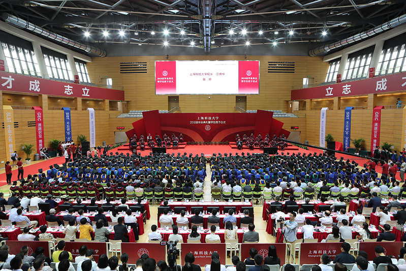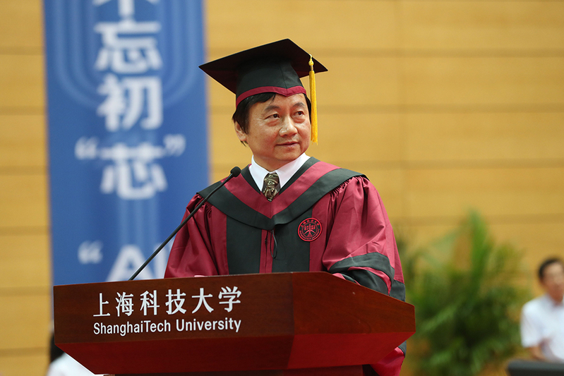 University Council Chairman Zhu Zhiyuan presided over the ceremony, which was held in the ShanghaiTech gymnasium and which was attended by ShanghaiTech University's Governing Board members, university leadership members, faculty committee members, directors of CAS affiliated institutes, government officials, representatives from companies and high schools, and the graduates'family members.