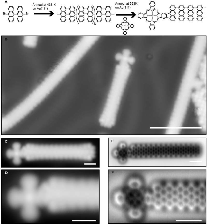 Fig 1. Bottom-up synthesis of MnPc fusing to the zigzag edge of AGNRs.