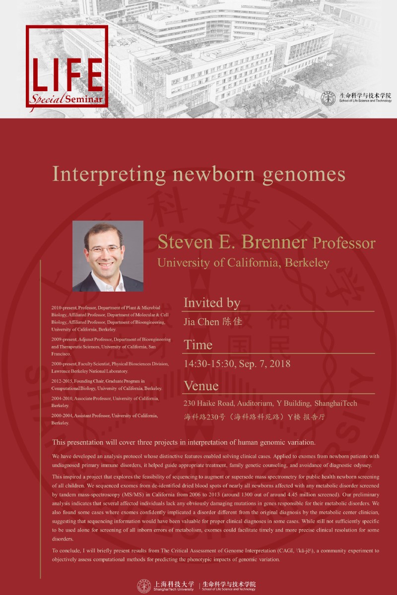 Speaker: Steven E. Brenner, Professor, University of California, Berkeley