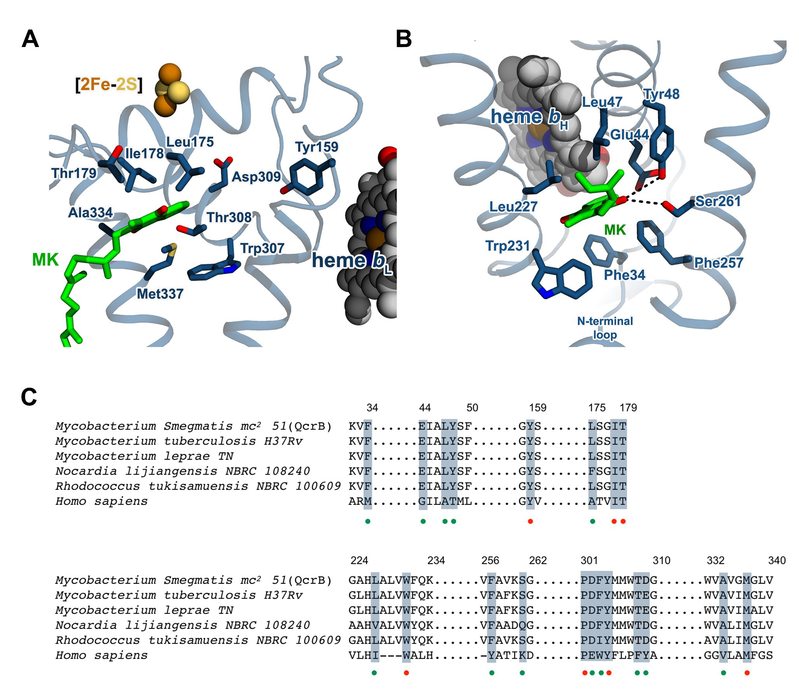 Binding site of substrate (MK) and the potential drug in mycobacterial complex III
