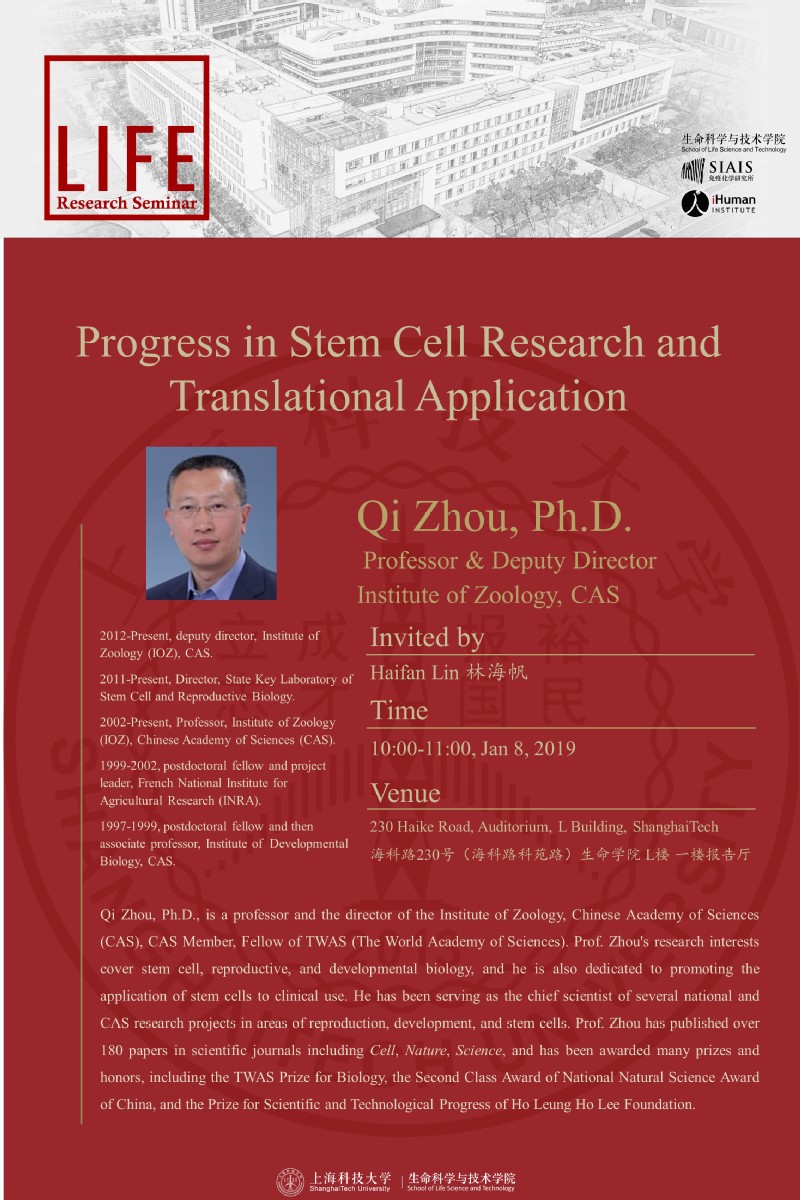 Speaker: Qi Zhou, Professor, Institute of Zoology
