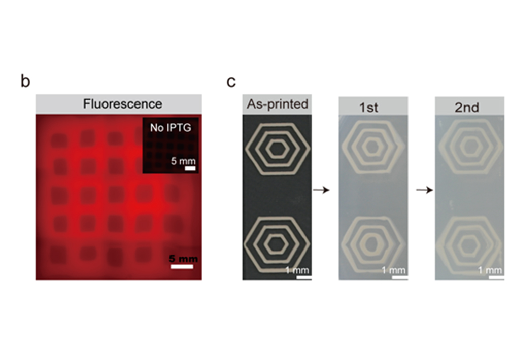 They further exploited the intrinsic viscoelastic properties of the engineered biofilms and fabricated well-defined ‘living shapes’ by trapping these materials into hydrogels and microgels using 3D printing and microencapsulation techniques (Fig. 4). Finally, as these bacterial biofilms are composed of living cells in well-defined geometries, they evaluated their self-regeneration capacity, storage, and long-term viability. This study demonstrates that they constructed a programmable and printable living functional material platform that may enable new applications in nanomanufacturing, biocatalysis, biomedicine, and other technical fields.