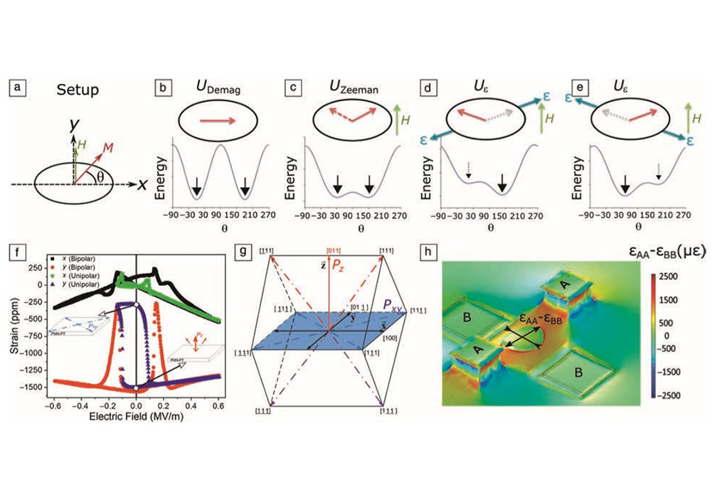 Their review also introduces the modeling of magnetic domains under various excitations. For the thin film model, the magnetoelastic energy mainly depends on the biaxial strain, while in the 011 cut PMN-PT, a giant anisotropic hysteresis is found, and a large biaxial stress can be generated. This means that only two electrodes are required to apply uniform biaxial stress over a large area, with two stable states, high transition speeds, and very low energy consumption. The advantages of this technique help to improve important equipment indicators such as energy efficiency, non-volatility, smaller size and faster speed. If in storage, magnetoelectric coupling makes nanosecond switching time possible, and because of its extremely low energy consumption, large-scale use will significantly reduce the global energy consumption in storage.