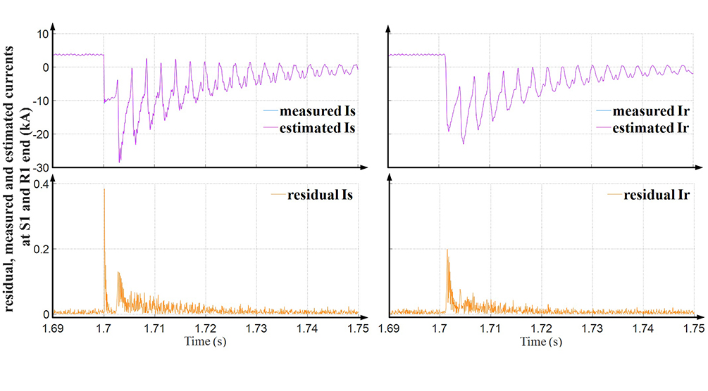 First year graduate student Wang Binglin adopted the dynamic state estimation method to protect the VSC-HVDC transmission lines in the paper ‘VSC-HVDC Transmission Line Protection Based on Dynamic State Estimation.’ By accurately constructing the physical model of the line under protection, the proposed method not only considered the measurement noise, but also ensured consistency between the actual and estimated measurements during severe external faults (shown in Fig. 1). Therefore, the method could effectively avoid mal-operation during severe external faults compared to legacy line differential protection scheme.