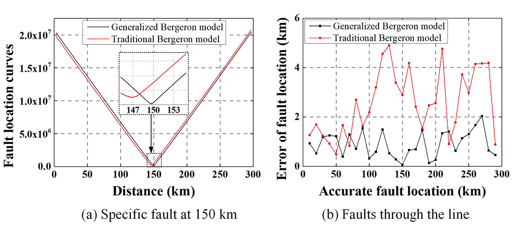 Fig. 2. Fault location results of generalized Bergeron model based method and traditional Bergeron model based method