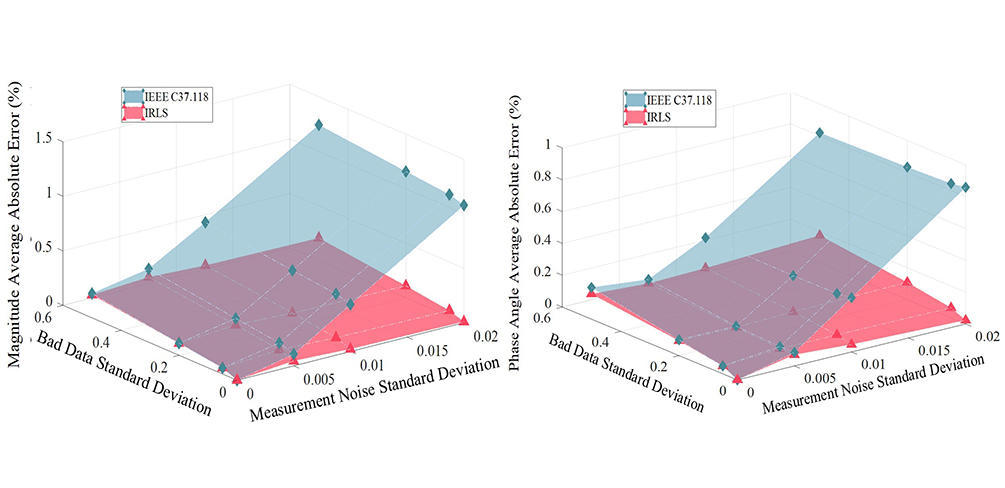Li Yunting, a recent undergraduate Class of 2018 graduate, proposed a new method to calculate synchrophasors based on IRLS robust state estimation algorithm in the paper ‘Synchrophasor Calculation Algorithm Based on Robust State Estimation.’ Compared to the existing synchrophasor calculation algorithm in IEEE C37.118 standard, the proposed method demonstrated better immunity to measurement noise and bad data (as shown in Fig. 3).