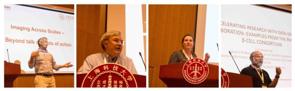 The forum consisted of both oral talks and panel discussions. Professor Raymond Stevens (iHuman Institute, ShanghaiTech University/University of Southern California) gave the opening remarks, welcomed the guests and scholars, and introduced the progress and collaborations of iHuman Institute with other research institutions regarding imaging across scales. He also gave a brief introduction to the history, the research field, and interdisciplinary features of the forum. Professor Wolfgang Baumeister (ShanghaiTech University/Max Planck Institute of Biochemistry, Germany) presented the developments and achievements of cryo-electron tomography, and highlighted its unique potential for imaging macromolecular polymeric proteins in functional cellular environments. Professor Kate White (University of Southern California) introduced the Pancreatic β-Cell Consortium, the current application of soft X-ray tomography in investigating the mesoscale atlas of β-Cell and its significance in whole-cell modeling. Professor Carl Kesselman (University of Southern California) introduced the data organization and sharing framework in Pancreatic β-Cell Consortium and shared how we can better use data to drive collaboration and accelerate research. Professor Helen Berman (Riggers University/University of Southern California) showed the management of integrated protein structure models in protein data bank. Professor Andrej Sali (ShanghaiTech University /University of California, San Francisco) introduced the integrative modeling of nuclear pore complexes and emphasized the significance and development of the integrative modeling framework.