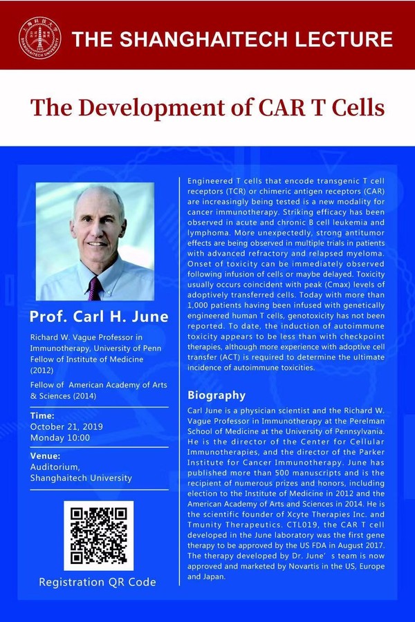 Carl June is a physician scientist and the Richard W. Vague Professor in Immunotherapy at the Perelman School of Medicine at the University of Pennsylvania. He is the director of the Center for Cellular Immunotherapies at the Perelman School of Medicine, and the Director of the Parker Institute for Cancer Immunotherapy at the University of Pennsylvania. June has published more than 500 manuscripts and is the recipient of numerous prizes and honors, including election to the Institute of Medicine in 2012 and the American Academy of Arts and Sciences in 2014. He is the scientific founder of Xcyte Therapies Inc. and Tmunity Therapeutics. CTL019, the CAR T cell developed in the June laboratory was the first gene therapy to be approved by the US FDA in August 2017. The therapy developed by Dr. June’s team is now approved and marketed by Novartis in the US, Europe and Japan.