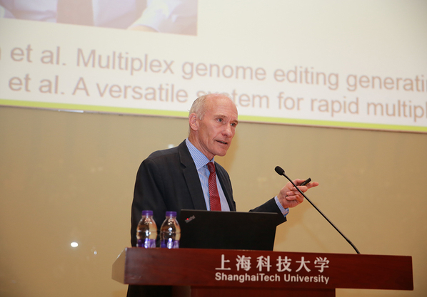 On October 21th, the CAR T-cell therapy pioneer Dr. Carl H. June delivered the ShanghaiTech Lecture, entitled “The Development of CAR T Cell Immunotherapy,” to a packed auditorium. ShanghaiTech president Dr. Jiang Mianheng thanked Dr. Carl H. June on behalf of ShanghaiTech University and presented him with the ShanghaiTech Lecture plaque as a token of appreciation.