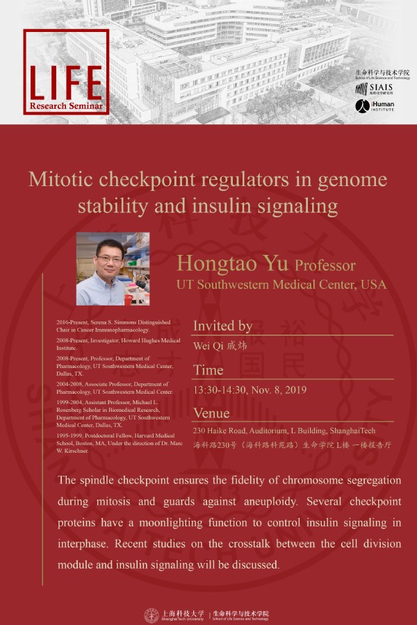 Speaker: Hongtao Yu, Professor, UT Southwestern Medical Center, USA