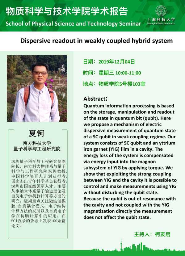 ON2019-12-02TAG: School of Physical Science and TechnologyCATEGORY: Lecture